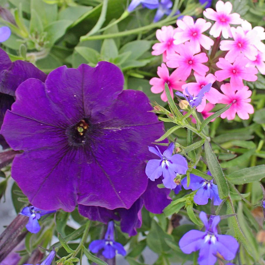1380 Lobelia Techno Heat Dark Blue, Petunia Suncatcher Midnight Blue, Verbena Lanai Bright Eye